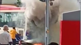 快捷通巴士引擎突然起火,所幸司机迅速用灭火器扑灭火势,事发时巴士内也没有乘客。