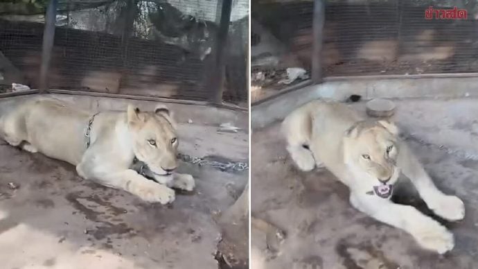 泰国北碧府一名网红饲养的母狮上周六(4日)晚上9时许从笼子逃脱,跑到镇上咬伤一名男童,附近民众立即与狮子搏斗,惊险救下男童。