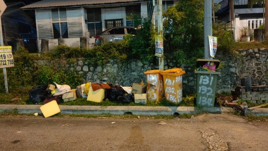 路太斜,垃圾车上不去,4住户把垃圾桶置放平底路以方便垃圾被收集;但此举却遭“垃圾虫”滥用,变成非法垃圾站。
