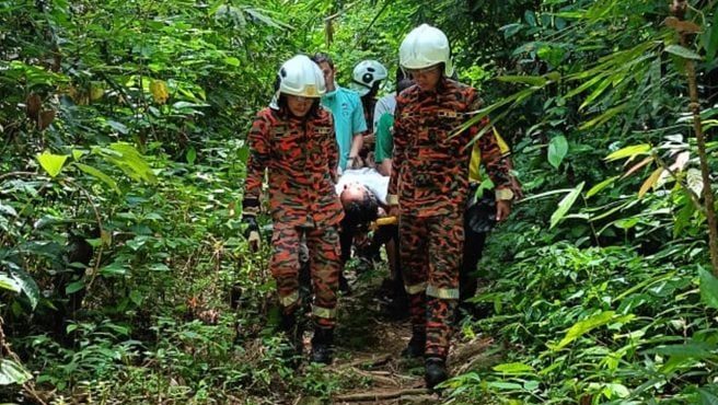 男子周末登山休闲竟失足跌伤头而受困山中,消拯局接获投报后已紧急上山协助救人。