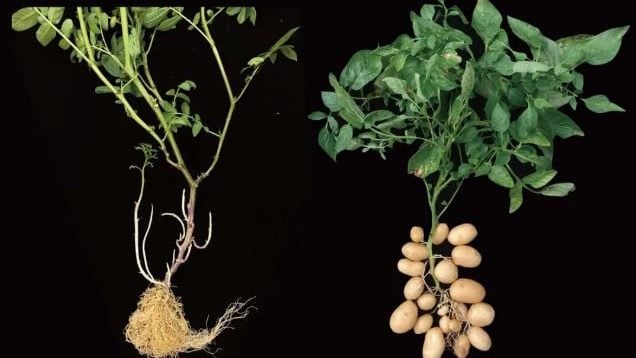 马铃薯和蕃茄一个长在地下,一个挂在藤上,谁也想不到,它俩的亲缘关系其实相当亲密。中国科学家团队的一项重大发现,马铃薯组起源于900万年前番茄组和类马铃薯组的一次神秘的基因融合,形成了最早带有薯块的马铃薯植株,才有了今天的马铃薯。