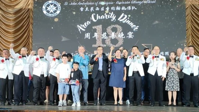 雪兰莪西区圣约翰救伤队日前在瓜冷篮球协会体育馆冷气大礼堂举行“18周年慈善晚宴”,筵开75席,场面温馨欢乐。