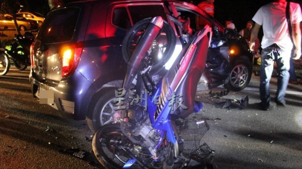 一辆摩托车撞上正在路上U转的汽车,导致21岁摩托车骑士当场丧命,而汽车内的一家六口也受轻伤送院治疗。