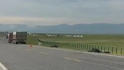 一辆大货车清晨时分在公路上行驶时,不巧遇上32头牦牛在过马路,大货车当场撞死了16头牦牛。