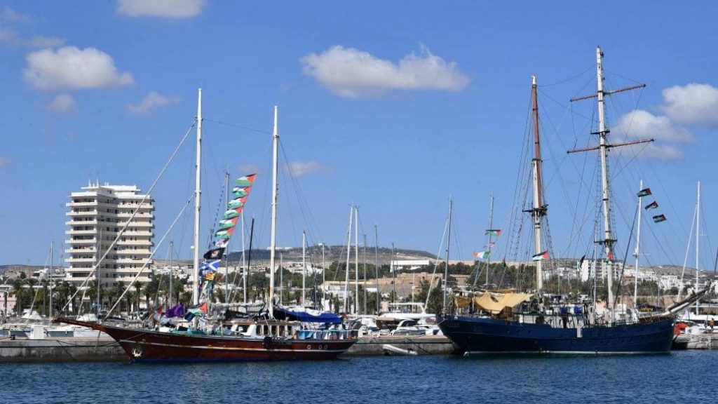 一支由51艘船只组成,名为“全球坚毅船队”的援助船队,本月稍早从西班牙巴塞罗那启航,目标是突破以色列对加沙的封锁,将援助物资送达当地。船上载有来自各国的和平运动人士,包括瑞典环保人士通贝里。23日深夜,船队行经希腊海域时,周围传出逾12次爆炸声,且有“不明物体”掉落甲板造成损害,甚至故意释放化学物质于民用船只上。