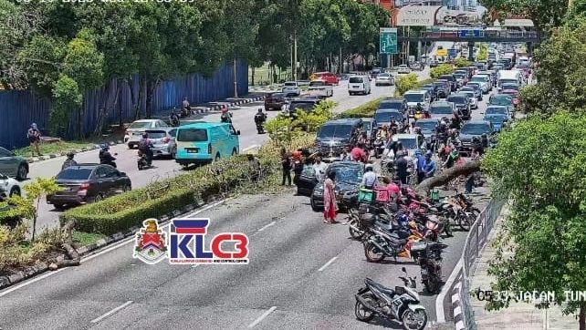 吉隆坡市中心敦拉萨路今日中午时分,发生一宗大树倒下,并压中一辆行驶中的宝马轿车的骇人意外,所幸车内的司机没有受伤。
