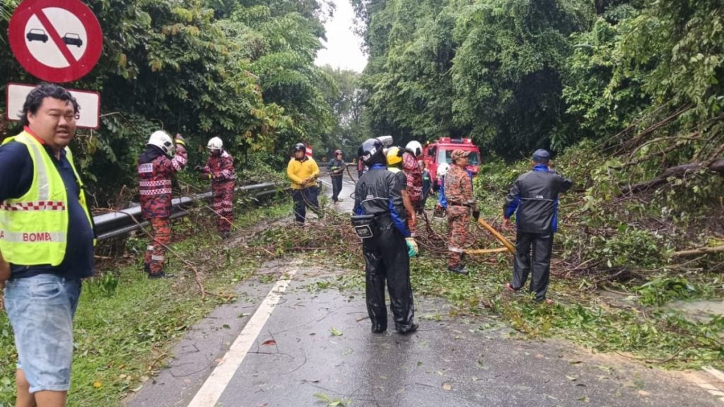 狂风暴雨袭乌鲁音 峇冬加里树倒拦路