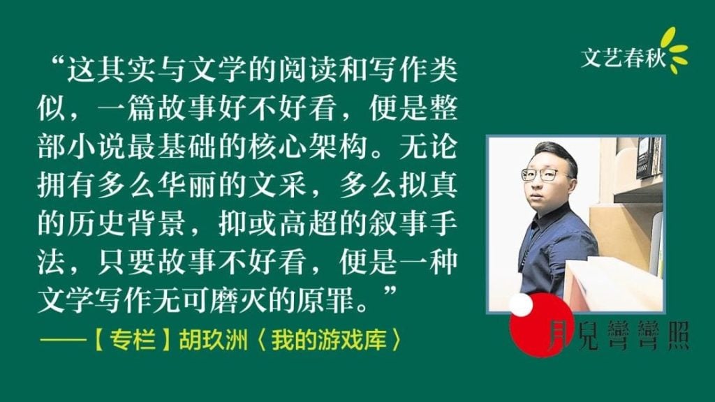 有人喜欢电影,有人收藏模型,自从拥有了人生第一张信用卡,我便也拥有了刷卡买游戏的乐趣。作为一个不喜社交的男子,在不工作不读书的日子里,大多时间都足不出户窝在自己的房间研究各类游戏。每当在上班闲暇偷懒玩游戏而正巧有人经过我身边时,我便会打开自己的游戏库,像介绍珍宝般一件件向他人介绍我所珍藏的好游戏,期待对方答复我也玩过,抑或受到吸引跟随我的脚步,将所有我推荐的游戏都玩一遍。 这年头每天都有新游戏上架,但渐渐发现值得投入成百上千小时去钻研的好游戏越来越少了。许多游戏大公司都把自家的游戏做得像电影,有丰富的过场动画、角色配音和场景配乐,更有画面质感逼真的细节纹路,仿佛什么都好,就是不好玩。一年下来真正值得一玩的好游戏寥寥无几,因此经常闹游戏荒,只能把以前买过的好游戏再拿出来打通一遍。上个月刚买了新上架的游戏《空洞骑士:丝之歌》,这是一个十分有自己美学特色且高难度的类银河战士恶魔城游戏,好的游戏就像一本不舍读完的诗集,每个星期挤出一点时间慢慢探索地图和玩法,深怕玩得快了又会陷入没游戏玩的困境。 作为一个游戏玩家,我偏爱具有策略深度和难度挑战的游戏,无论是魂类动作游戏、即时战略、角色扮演、回合制策略、Roguelike,各种类型的游戏只要有其独特玩法和优点我都能沉浸其中乐此不疲。有时不惜花费数十小时去观看长篇大论的文字和影片攻略,只为搞懂游戏的底层规则运算逻辑、职业技能搭配和游戏世界观,都是一件能够令人愉悦的事情。同样的,我厌恶所有四平八稳,为照顾所有玩家群体而降低难度的无聊游戏。对我来说游戏性是所有游戏最基本的架构,无论开放世界场景多么辽阔,美术建筑设计多么还原历史,剧情写得如何感人,只要不好玩,便是一种游戏无可磨灭的原罪。 我喜欢具备玩法深度,值得花费长时间研究技能搭配的游戏,当然这在普通的休闲玩家看来却是需要庞大学习成本的负担。所有优秀的游戏必定不是完美的,各有各的缺点,无法满足所有的人。但每项优点都拥有无可遮蔽的光芒,甚至说部分的缺点就是为了衬托优点而存在,使其成为独特韵味的游戏风格,能够被重新拿出来一玩再玩。一部没有缺点,能够迎合市场所有群体且面面俱到的游戏,我想最终只会沦为无聊的平庸之作吧。 这其实与文学的阅读和写作类似,一篇故事好不好看,便是整部小说最基础的核心架构。无论拥有多么华丽的文采,多么拟真的历史背景,抑或高超的叙事手法,只要故事不好看,便是一种文学写作无可磨灭的原罪。一部想要迎合市场涵盖所有读者群体,期望所有人都能看懂的作品,最终也只会是没有深度的无聊平庸之作。 游戏需要深度,文学写作更是如此。即便构筑了一个辉煌的宇宙也不需要完全展露出来,而是相信读者,相信他们投入足够的时间和精力后,也能自己摸索出来,一步步揭露的参与感,是一种读者付出努力后获得回报的喜悦。一部没有深度的作品就像是市场上随处可见的各类免洗换皮手游,手把手带领你度过无聊透顶的新手教程。无需思考所有步骤的意义,只需按部就班地接收官方发来的讯息。起初或许会感到新颖,但多经历几次便会索然无味,对一再重复的简单作业感到厌恶。 文学写作题材如同游戏的玩法类型有千百种,总会找到适合自己的类型。一个好的游戏,无论被游戏公司跳票多少次,都值得我们等待;一本富有省思的著作,同样值得我们一读再读。 相关文章: 【专栏.月儿弯弯照】胡玖洲/婚宴文化 【专栏.月儿弯弯照】胡玖洲/活着的名字 【专栏.月儿弯弯照】胡玖洲/有学生问我AI和写作的问题