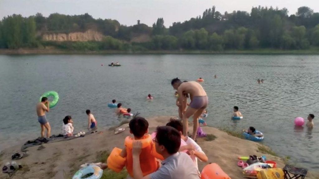 河南郑州尖岗水库被爆出成了“野泳乐园”!