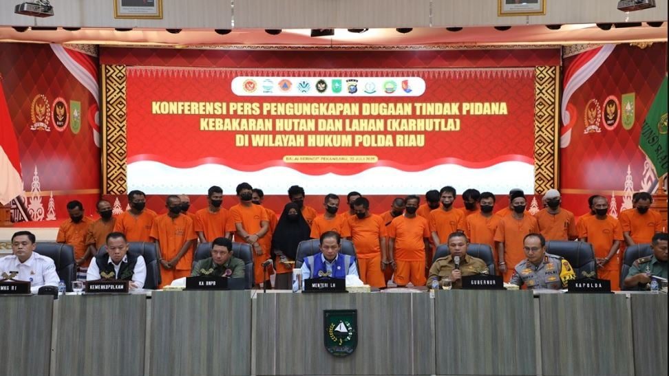 印尼官员周三表示,当局逮捕了44名涉嫌引发森林和泥炭地火灾的嫌犯,这些火灾正在该地区造成有害健康的烟霾。
