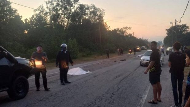 一辆摩托车在摩立路段骑行途中,不知何故失控误闯对面车道,导致一辆迎面而来的载砂石倾斗罗里闪避不及撞个正着。