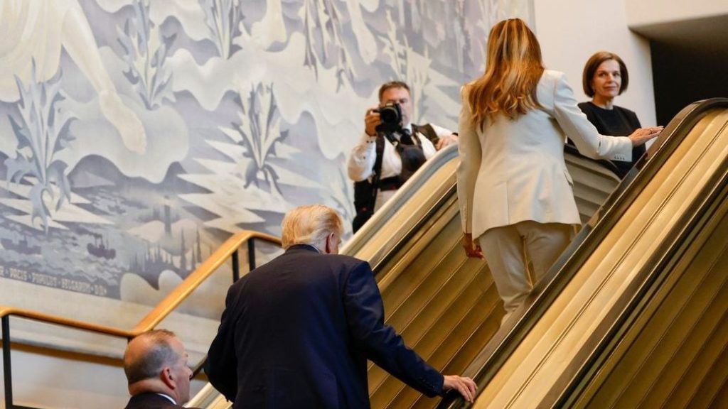 美国总统特朗普周二到联合国讲话,开启其第二任期联大首秀就遭遇么蛾子不断。上电梯电梯突然停了,把特朗普和第一夫人梅拉妮困在上面“进退两难”,最后不得不步行上楼。