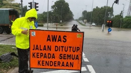 从武吉巴容(Bukit Payong)前往第二东海岸大道的红绿灯十字路口因积水暂时封闭。