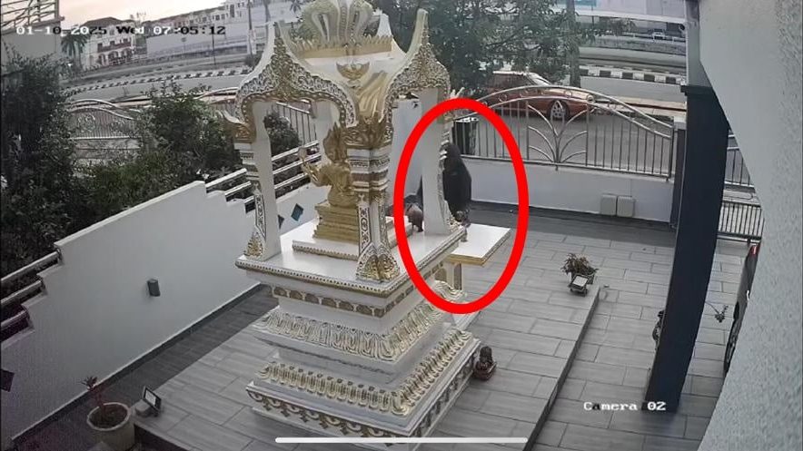 蒙面戴手套翻墙 窃贼清晨偷香炉