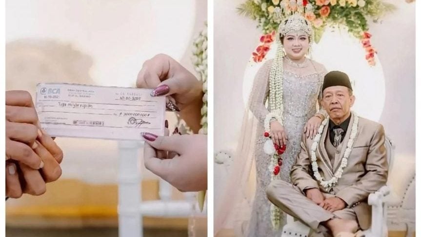 印尼一名74岁老翁迎娶年仅24岁的年轻新娘,并以高达30亿印尼盾(约77万令吉)作为聘金,引起热议!