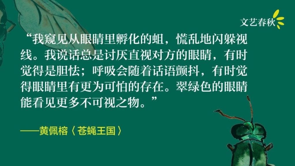 苍蝇的视力极好,复眼里装载了千只小眼。人们停驻在巴士站,规矩地排成蜈蚣般歪歪曲曲的队伍。余光瞥见,车头光影踱着猫步溜过铁杆座位。那歪扭的队伍仅上了一半,巴士摇晃地迈开腿走了。而紧贴着它屁股的下一辆巴士又打开了车门。在我前方排队的阿姨朝脚边吐出一口痰,落下四溅。原以为只是习惯,新村的长辈们都有着同样的习惯。直至每隔十秒,她都在等待的位置吐出一口痰,而后感受到一滴温热感溅在我的小腿上。我大抵是无法再忍受了。身子与队伍岔开,避开脚边任何看似液体的形状,急匆匆地上了巴士。 巴士有着另一番风景,包括人事物。当巴士启动,所有的头颅不自觉地看向了窗外。我厌倦了生活,却无法对观察他人的生活产生任何倦怠。活着的梦在那一双双无神的眼里产卵,他们的复眼已然看不清蒙上雾气的窗。原来目的并不是风景,只是想看清今日的自己,究竟为何物。我尝试反复眨眼,边凝神望过这使我晕眩的城市。雾气和雨滴化形的窗户,早已改变视线中的图像。雨雾在窗上形成露珠,窗户在我晃动的脑袋间,竟幻化成了吉力卜般的童话景像。我惊喜地贴近它,透过那一颗颗雨滴,看见杂草丛中有一辆绿火车。但它却没有向我驶来。 我知道自己在刻意否定掉异化的复眼,回到人类时期还拥有灵性的双眼。现实往往是越执着越无法得到,直到我发现大脑开始僵化;望向窗外却在恍神,抑或是我的生活像是提线木偶,重复着毫无意义被绳索套着的生活。那他们也是如此吗?耳边萦绕巴士铁架“咔铛”声,摇摇晃晃。不知什么时候有只苍蝇在巴士内盘旋。窗外青绿色光影掠过,车身喑哑摩擦声唦唦作响。高高盘旋俯视着众人的苍蝇,此时停落在我手边的铁杆上。它不怀好意地看着我,而我也回望它。 苍蝇或许在观察什么。周围传来此起彼伏的咳嗽声,当一处响起浓痰搅动的酝酿;另一处开始接收信号,从咽喉吐出气体。到我这里,却焦虑地左右窥探,喉咙泛出不适的痒意。我试探性地咳出几声,右边的妇人仿佛接收到我的信号,也放声痛快地咳起来。我瞥见她咳得泪水盈眶,肺腑里的内脏都快倾泻而出。她的声音在彻底沉寂下来的巴士回荡,空调冻得气氛无助波动。我想起曾在旧古仔走过一段很长的路,路边有一排盛满黄色小花的树。唯一令我不满的是,电线杆上总是站着密密麻麻的乌鸦,骨溜转动着黑色眼珠。为首的乌鸦发现我靠近,就会张开喙啼叫。旁边的乌鸦听见后便会“嘎嘎”提醒伙伴,循环往复。于是我走过那条美丽的花路,仅剩下乌鸦的啼叫声。 苍蝇扇动莹绿网格的翅膀,被车门打开后的热浪袭击。热气使得香水味更是刺鼻,它却已经习惯了这样的气味,反而餍足地搓搓手。巴士越来越拥挤,司机还在让人们后退。不大的空间里,陌生人与另一个陌生人亲密贴近,只能严肃着脸目视前方。最终变成一排站着的人维持相同的姿态,却个个瞪圆眼睛,面无表情板硬着脸。他们的眼睛一眨不眨,直盯着窗户看,眼睛却不知聚焦于何处。 苍蝇闻见了同胞的气息,兴奋地“嗡嗡”个不停。我透过窗户的倒影,一道折射出无数个灵魂的波光,看见虫卵在死去的双眼里,孵化、诞生。蠕动着白色而柔软的身体,吵噪的声音充斥着大脑,在呼叫谁?巴士笛鸣声不断,像长出了高频振动的翅膀,急促逼退了靠近的车辆。车身时而上下蹦跳,人们便是被困在打发器里的肉团,躲不开在脸上抓挠的苍蝇。 我窥见从眼睛里孵化的蛆,慌乱地闪躲视线。我说话总是讨厌直视对方的眼睛,有时觉得是胆怯;呼吸会随着话语颤抖,有时觉得眼睛里有更为可怕的存在。翠绿色的眼睛能看见更多不可视之物。巴士上总有个发出呼噜声的生物,他困倦、疲惫不堪,眼底下积累了日夜的失眠,耸拉着厚厚一层皮肤。嘴大长着,苍蝇在他嘴边徘徊。身旁站立的人,或许是他的好友。我不敢肯定,只是远远地窥视。我知道。我企图用这种方式看见美丽的事物,有时看向窗外安慰自己,一会儿又被那人的动作和呼噜声吸引注意。 他同我一样,鬼祟地观察许久,用复眼揣摩最佳时机,搓了搓手上的皮屑。然后伸进包里,仿佛他徒手淘了我的心脏,却见他淘出矿泉水瓶,猛地捅进男子打呼噜的嘴里。谁知道。我被这个动作的疯劲捅死好几次。 打呼噜的男子发出“唔唔”,反复抓挠被塞进嘴里的瓶子,双眼瞪得鼓圆,呼哧呼哧地呼吸,眼球颤动。有人在笑,有人在用手机录像或拍照,司机依旧一面播放视频一面急速驾驶。那个忽然产生变化的人,宛如臆想般又回到面无表情的时刻。没有矿泉水瓶、没有施暴、没有呼吸,也没有人曾有过惊动。 可虫卵都被惊醒了。众人的视线目不转睛盯着看,没人说话。我见他们,如同我一般,细细品味这忽然产生变化的日子。再回头,我却觉得自己没救了。 窗户倒映的我,脸上长着巨大的复眼,里头有无数个属于我的影子,它们震惊、恐惧或忧愁,占据正中央的我却已然成为了同无数人那般的麻木,抓住一丝丝的变化只不过是为了宽慰自己,仍在为人的时刻。我恍然四顾,周围所有人也仿若不曾有过变化。 巴士过了一个又一个的隧道,光时而晕晕地闪过。巴士回到车站前,苍蝇再次排起了歪曲的队伍。当我下了巴士,悄悄跟在人们后头,却只想藏起讨厌的复眼。 相关文章: 【深耕文學創作/散文】只有我和影子記得/黄佩榕