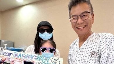 沈玉琳日前因身体不适入院,原以为是猛爆性肝炎,经多日检查后,确诊为血癌(白血病),并已低调转院至台大医院接受治疗。昨日适逢台湾父亲节,他在病房中迎来妻女探望,收到宝贝女儿亲手制作的暖心卡片,一家三口团聚庆祝,气氛温馨感人。
