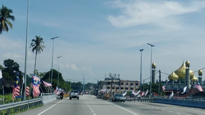 国庆日即将到来,文冬市区也换上了新装扮,街道上处处可见辉煌条纹飘扬,洋溢国庆的氛围。