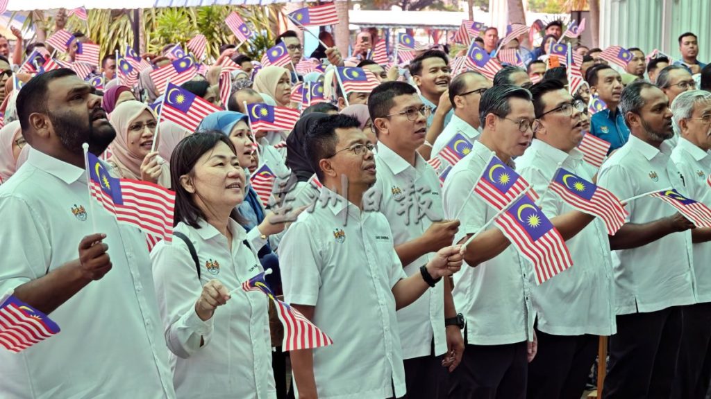 威省市政厅庆祝第68周年的马来西亚独立日,召集职员一起挥舞国旗及高唱爱国歌曲,同时激发职的爱国情操,以及同事之间的团队合作精神