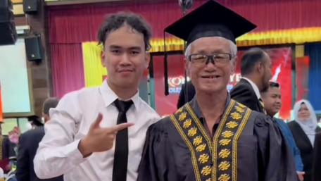 一名大学毕业生在典礼上脱下学士袍,披在爷爷身上,以此感谢爷爷当年为养家而被迫辍学的牺牲,场面温馨感人。