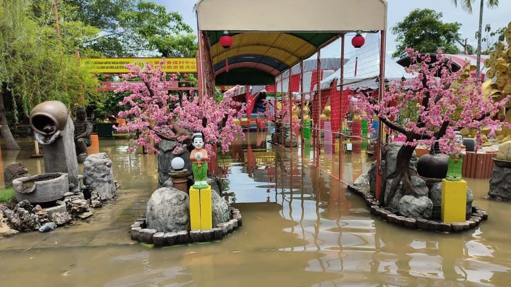 吉打水灾 | 三圣慈善福利中心文化村 中秋装饰遭水淹